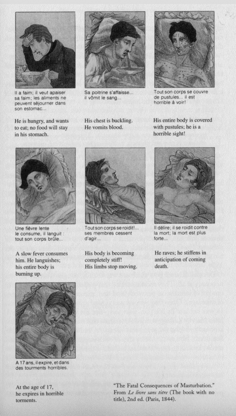 “This, in a nutshell, is the advice given to young French men in 1830. At that time, masturbating was considered by moralizers and doctors as a disease which leads to early death.”